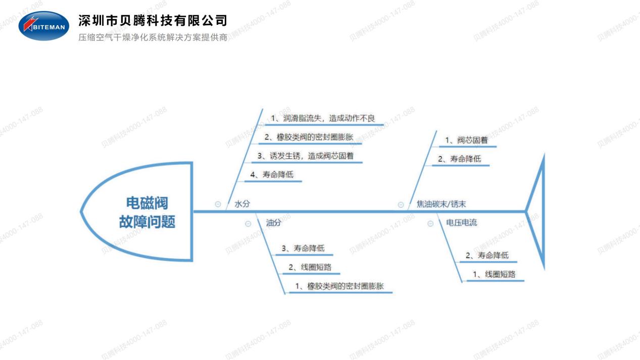 氣動電磁閥是用來控制流體的自動化基礎(chǔ)元件,具有反應(yīng)快,動作更靈敏,調(diào)節(jié)控制方便等優(yōu)點,廣泛應(yīng)用于自動化領(lǐng)域。正常情況下,氣動電磁閥壽命在5年以上(2000萬次切換以上),但是,由于壓縮空氣含水含油超標(biāo),導(dǎo)致壽命大幅下降,風(fēng)險不可控,頻繁故障停機(jī),嚴(yán)重影響正常的安全生產(chǎn)。