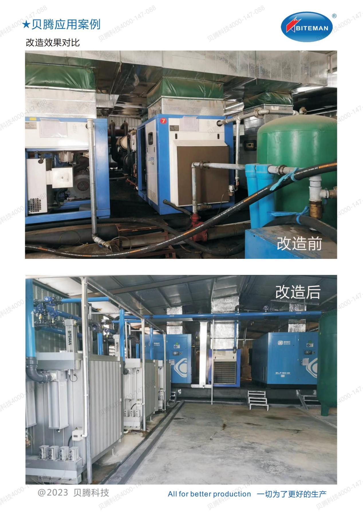 5. 貝騰解決方案:壓縮空氣干燥凈化設(shè)備選用國內(nèi)技術(shù)領(lǐng)先的貝騰第八代產(chǎn)品干燥凈化一體機(jī),徹底解決原空壓站壓縮空氣品質(zhì)嚴(yán)重不達(dá)標(biāo)、壓降大、能耗高等直接影響企業(yè)生產(chǎn)的痛點問題,大大提升生產(chǎn)工藝水平和產(chǎn)品良品率,增強(qiáng)企業(yè)的核心競爭力。
