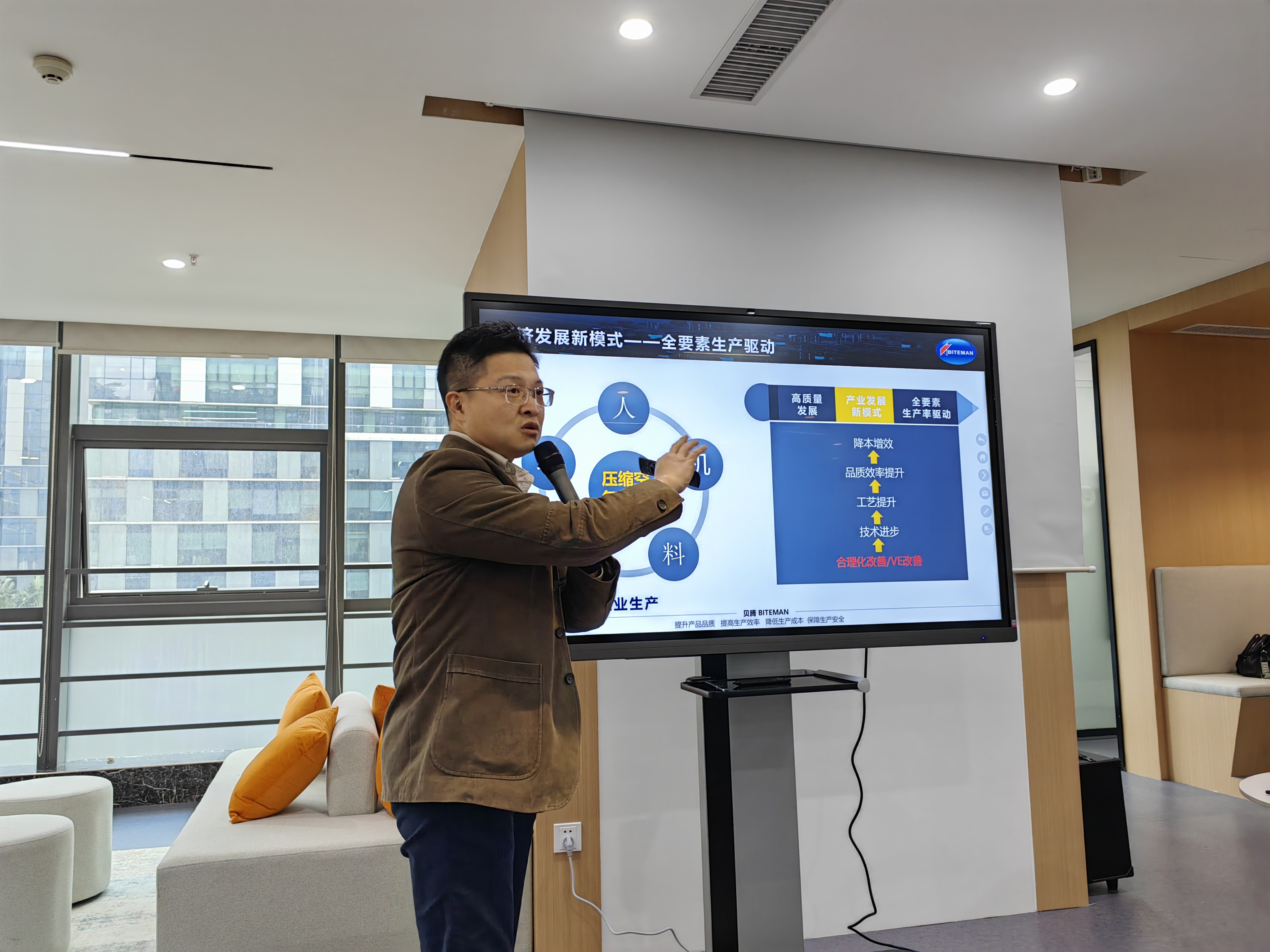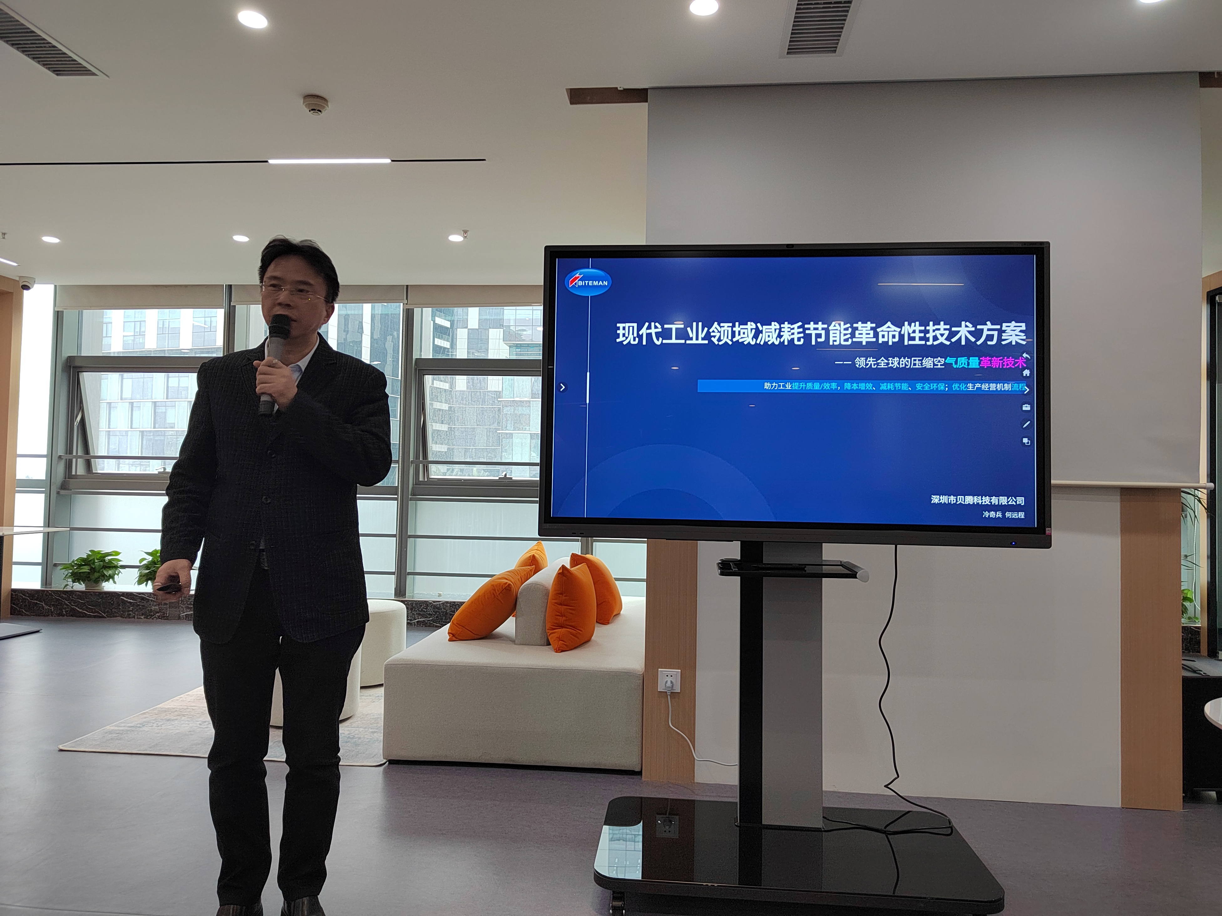 期間,貝騰科技生產(chǎn)中心總監(jiān)冷奇兵先生就《現(xiàn)代工業(yè)領(lǐng)域減耗節(jié)能革命性技術(shù)方案》發(fā)表主題演講,冷總著重介紹了貝騰的創(chuàng)業(yè)故事、氣質(zhì)量提升的案例、壓縮空氣質(zhì)量技術(shù)的發(fā)展、貝騰氣質(zhì)量革新技術(shù)的價值,及貝騰氣質(zhì)量革新技術(shù)對于新型工業(yè)化、深圳“20+8”產(chǎn)業(yè)集群發(fā)展、我國工業(yè)產(chǎn)業(yè)高質(zhì)量發(fā)展的重大意義。