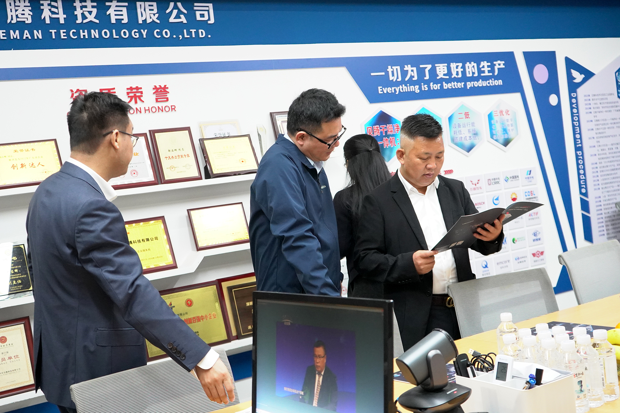 ? ? ? ?在貝騰科技董事長郭應(yīng)輝的陪同下,考察團(tuán)參觀了企業(yè)展廳和生產(chǎn)車間。公司重點(diǎn)展示了自主研發(fā)的干燥凈化一體機(jī)和模芯干燥機(jī)等創(chuàng)新產(chǎn)品,這些產(chǎn)品采用的專利技術(shù)能有效解決壓縮空氣處理難題,同時(shí)實(shí)現(xiàn)顯著節(jié)能效果,獲得考察團(tuán)成員的一致好評。