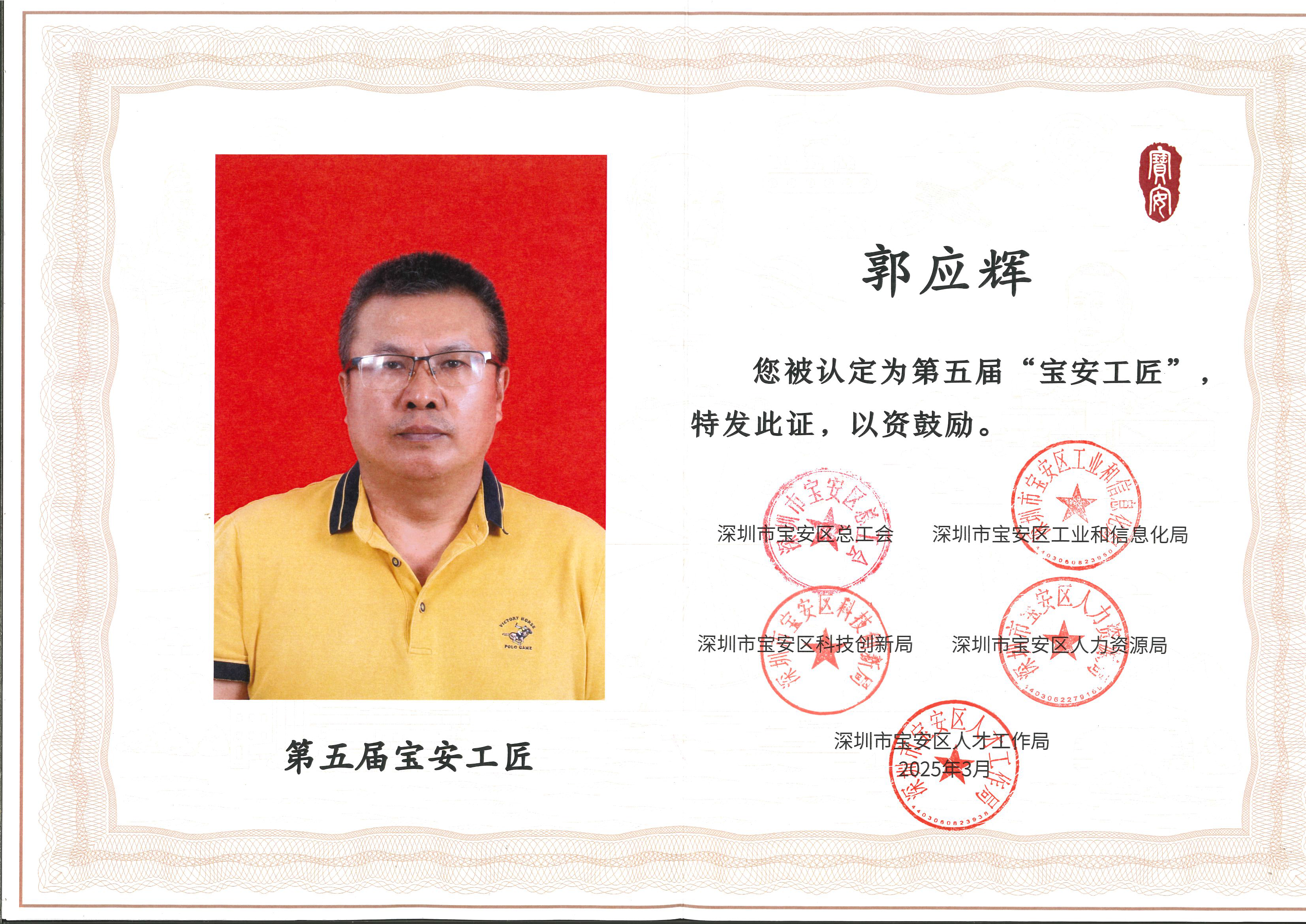 貝騰科技創(chuàng)始人郭應(yīng)輝榮獲 2024 年深圳市寶安區(qū)工匠稱號
