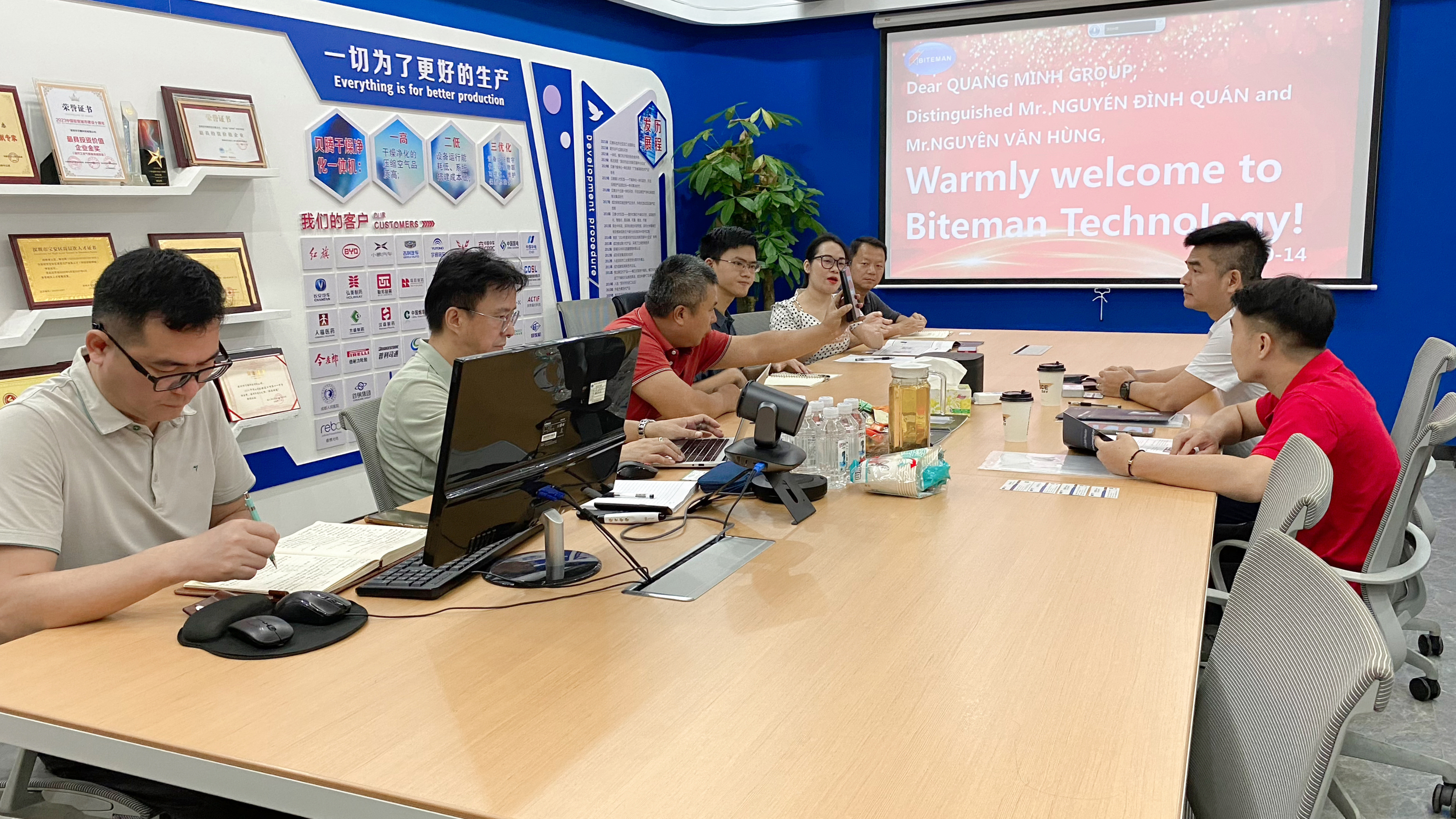 ? ? ? ?隨后,雙方進行了深入的座談交流。貝騰科技負責人郭應(yīng)輝向越南客戶介紹了公司的發(fā)展歷程、產(chǎn)品優(yōu)勢以及未來的發(fā)展規(guī)劃,貝騰科技自成立以來,始終堅守“一切為了更好的生產(chǎn)”的企業(yè)宗旨,全力為客戶提供優(yōu)質(zhì)產(chǎn)品與服務(wù)。多年的砥礪前行,讓公司在行業(yè)中樹立起良好的品牌形象,收獲了廣大客戶的信賴與支持。越南客戶也分享了越南市場的需求和發(fā)展趨勢,雙方就合作具體內(nèi)容展開深入探討,共同探尋互利共贏的合作模式。越南客戶表達了與貝騰科技建立長期穩(wěn)定合作關(guān)系的意愿,共同推動雙方業(yè)務(wù)長遠發(fā)展。